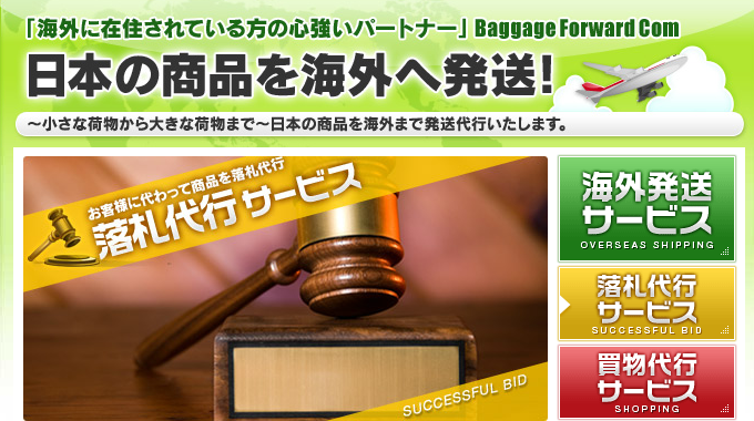 お客様の多種多様なご要望に応じて海外発送代行(海外転送)いたします。 「何時でも、どこの国に居ても日本の商品を手に入れたい!!」を可能にするのがバゲッジフォワードコムのサービスです! 会員登録(無料)だけで、今すぐご利用可能です!(新規会員登録)